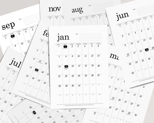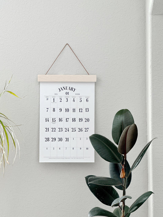 SMALL 2024 WALL Calendar, 8.5 x 11 Simple Wall Calendar, Hanging Calendar, Minimal Wall Calendar, Calendar, 9" Baltic Birch Hanger